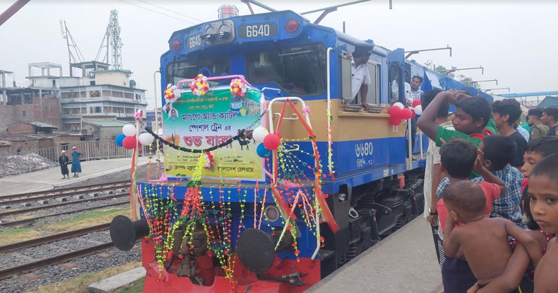 এর আগে সোমবার বিকাল ৪টায় রহনপুর স্টেশন থেকে ১০২০ কেজি আম নিয়ে যাত্রা শুরু করে ম্যাংগো স্পেশাল ট্রেন। এরপর নাচোল, আমনুরা জংশন হয়ে চাঁপাইনবাবগঞ্জ রেল স্টেশনে আরো ৭৮৫ কেজি উঠানো হয়। পরে আনুষ্ঠানিক উদ্বোধন শেষে আম নিয়ে সন্ধ্যা ৬টায় রাজশাহী উদ্দেশ্য ছেড়ে যায় ট্রেনটি।