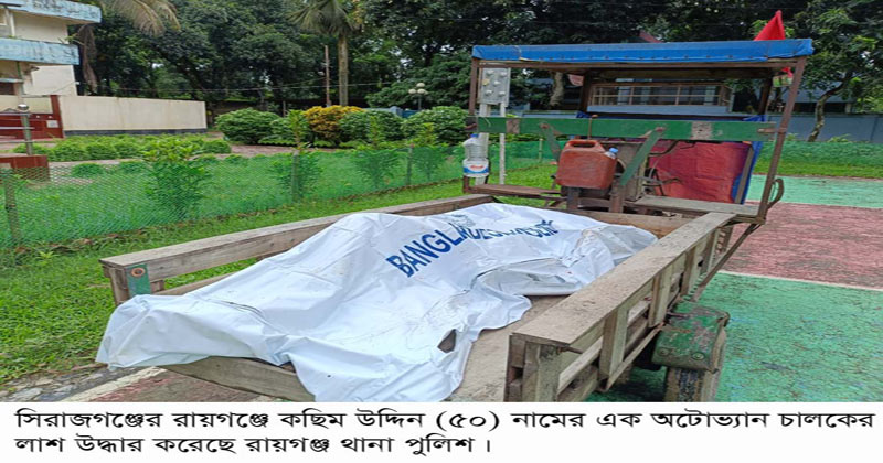 সিরাজগঞ্জের রায়গঞ্জে কছিম উদ্দিন (৫০) নামের এক অটোভ্যান চালক কে কুপিয়ে হত্যা করেছে দুর্বৃত্তরা। গতকাল মঙ্গলবার সকালে সোনাখাড়া ইউনিয়নের গোতিথা গ্রামে এ ঘটনা ঘটে। নিহত কছিম উদ্দিন নিমগাছী বিলের পাড় এলাকার শফিকুল ইসলামের ছেলে।