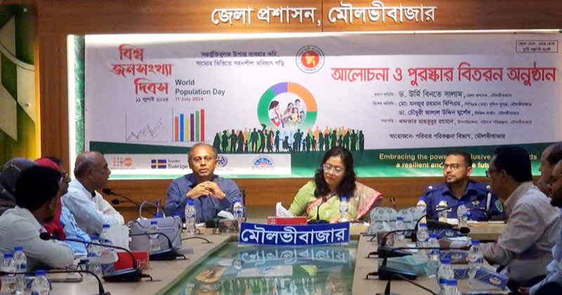 “অর্ন্তভুক্তিমূলক উপাও ব্যবহার করি, সাম্যের ভিওিতে সহনশীল ভবিষ্যৎ গরি” এই প্রতিপাদ্যে মৌলভীবাজারে পালিত হয়েছে বিশ্ব জনসংখ্যা দিবস-২০২৪। দিবসটি উপলক্ষে বৃহস্প্রতিবার (১১ জুলাই) সকালে জেলা প্রশাসকের সম্মেলন কক্ষে মৌলভীবাজার পরিবার পরিকল্পনা বিভাগ এর আয়োজনে এক আলোচনা সভা ও পুরস্কার বিতরণ অনুষ্ঠান অনুষ্টিত হয়।