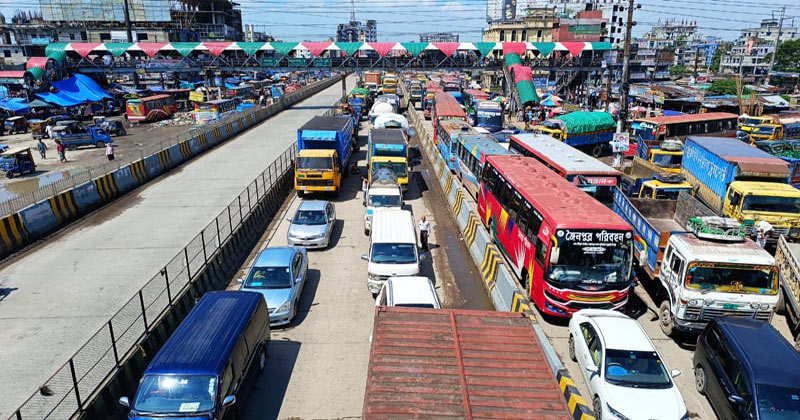 ছুটির দিনে ঢাকা-চট্টগ্রাম মহাসড়কের নারায়ণগঞ্জের সিদ্ধিরগঞ্জের সানারপাড় থেকে বন্দরের লাঙ্গলবন্দ এলাকা পর্যন্ত চট্টগ্রামমুখী লেনে ১৪ কিলোমিটার দীর্ঘ যানজটের সৃষ্টি হয়েছে। ফলে চরম দুর্ভোগে পড়েছেন যাত্রী ও চালকরা।