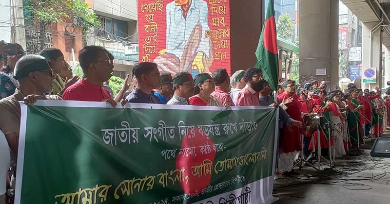 জাতীয় সংগীত নিয়ে ষড়যন্ত্রের প্রতিবাদে এবং জড়িতদের রুখে দিতে সারা দেশে একযোগে হয়ে গেল জাতীয় সংগীত গাওয়া কর্মসূচি।
