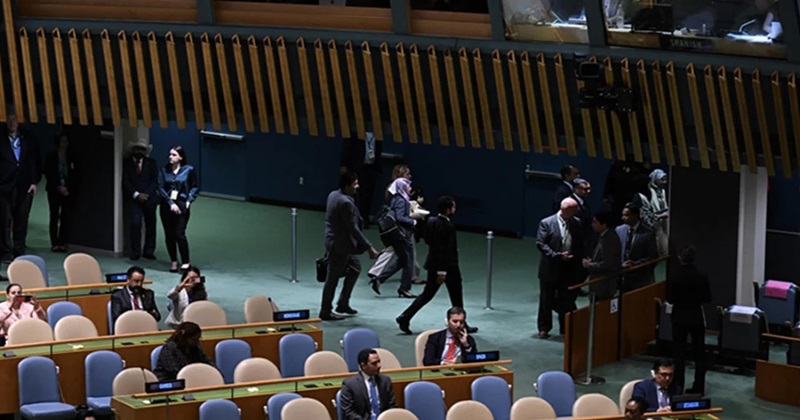 গণমাধ্যমের প্রতিবেদন থেকে জানা গেছে, প্রথমে তুরস্কের স্থায়ী দূত অধিবেশনকক্ষ থেকে বের হয়ে যান। এরপর একে একে তার পেছনে অন্যরাও বের হয়ে যেতে থাকেন।