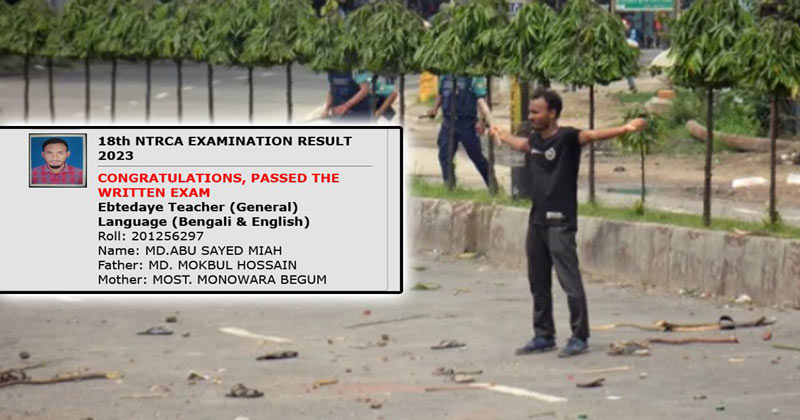 বৈষম্যবিরোধী ছাত্র আন্দোলনে পুলিশের গুলিতে নিহত বেগম রোকেয়া বিশ্ববিদ্যালয়ের (বেরোবি) শিক্ষার্থী শহীদ আবু সাঈদ ১৮তম শিক্ষক নিবন্ধনের লিখিত পরীক্ষায় পাস করেছেন।