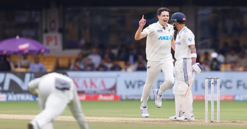 বেঙ্গালুরুতে ভারত-নিউজিল্যান্ডের প্রথম টেস্টের প্রথম দিনে বৃষ্টির কারণে একটি বলও মাঠে গড়ায়নি। বৃহস্পতিবার (১৭ অক্টোবর) দ্বিতীয় দিনে টস জিতে ব্যাটিংয়ের সিদ্ধান্ত নেন ভারতের অধিনায়ক রোহিত শর্মা। তবে কিউই পেসারদের বোলিং তোপে মাত্র ৪৬ রানেই গুটিয়ে যায় তাদের ইনিংস।