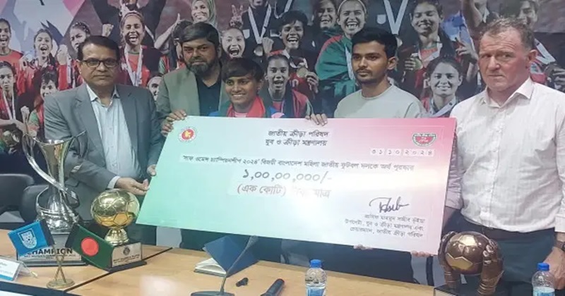 সাফজয়ী নারী ফুটবলারদের এক কোটি টাকা পুরস্কার দিল যুব ও ক্রীড়া মন্ত্রণালয়।