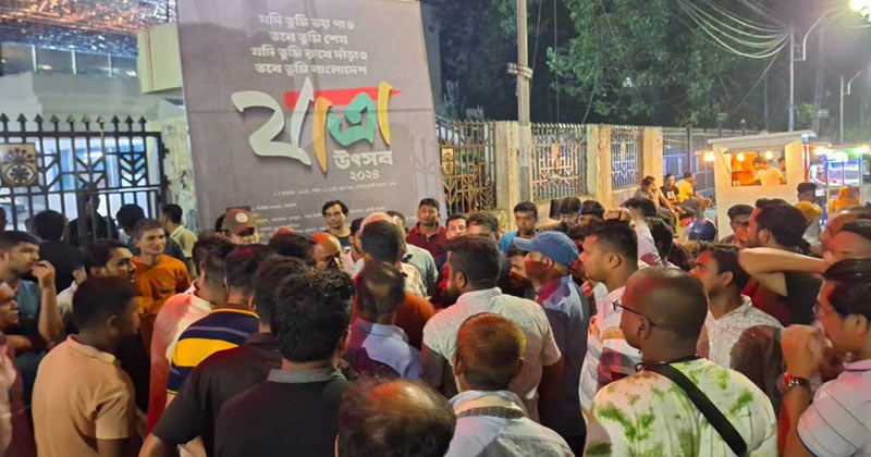 তিনি আরও বলেন, ‘প্রথমে তারা মেনে নেয়, আমরা নাটকের প্রদর্শনী শুরু করতে বলি। কিন্তু পরে আবার বিক্ষোভ শুরু করে। তখন তারা উত্তেজিত হয়ে পড়ে। তাদের একজন নিজেকে রিকশাচালক পরিচয় দিয়ে জানায় যে জুলাই আন্দোলনে তিনি গুলিবিদ্ধ হয়েছেন।’