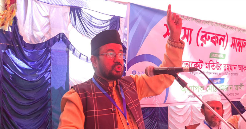 শুক্রবার (৮ নভেম্বর) কিশোরগঞ্জ শহরের নগুয়া এলাকায় আল-ফারুক ট্রাস্ট মিলনায়তনে জেলা আমিরের শপথগ্রহণ ও সদস্য (রুকন) সম্মেলনে প্রধান অতিথির বক্তব্যে তিনি এসব কথা বলেন।