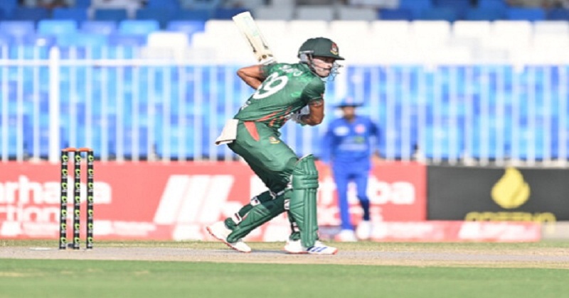 শনিবার (৯ নভেম্বর) সংযুক্ত আরব আমিরাতের শারজাহ স্টেডিয়ামে টস জিতে ব্যাট করার সিদ্ধান্ত নেন টাইগার অধিনায়ক নাজমুল হোসেন শান্ত। ব্যাট করতে নেমে ভালো শুরু পায় বাংলাদেশ। তবে জোড়া উইকেট হারিয়ে ধাক্কা খায় টাইগাররা। এরপর অধিনায়ক নাজমুল হোসেন শান্তর ফিফটিতে ভর করে এগোচ্ছে বাংলাদেশ।