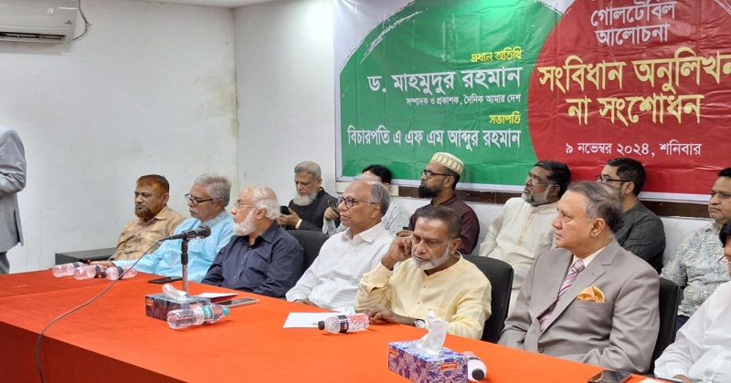 শনিবার (৯ নভেম্বর) জাতীয় প্রেস ক্লাবের জহুর হোসেন চৌধুরী হলে নাগরিক ফোরাম আয়োজিত ‘সংবিধান অনুলিখন না সংশোধন’ শীর্ষক গোলটেবিল বৈঠকে তিনি এ মন্তব্য করেন।