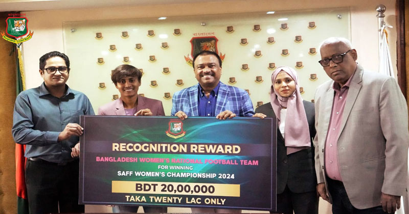 মেয়েদের সাফ চ্যাম্পিয়নশিপে টানা দ্বিতীয় আসরে শিরোপা জিতেছে বাংলাদেশ। লাল-সবুজ পতাকাকে আবারও এশিয়ান শ্রেষ্ঠত্বের আসরে অলঙ্কিত করায় চ্যাম্পিয়ন সাবিনা খাতুনের দলকে পুরস্কার দেওয়ার ঘোষণা দিয়েছিল বাংলাদেশ ক্রিকেট বোর্ড (বিসিবি)।