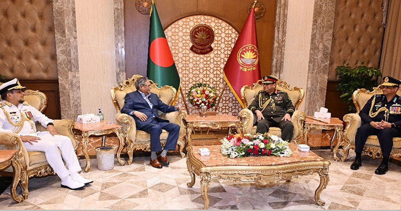 সশস্ত্র বাহিনী দিবস উপলক্ষে রাষ্ট্রপতি মো. সাহাবুদ্দিনের সঙ্গে সৌজন্য সাক্ষাৎ করেছেন তিন বাহিনীর প্রধানরা।