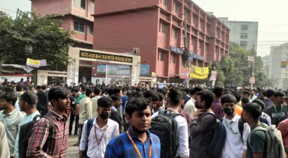 সোমবার (২৫ নভেম্বর) সকাল ১০টা থেকে কবি নজরুল কলেজের সামনে জড়ো হতে থাকেন কবি নজরুল ও সোহরাওয়ার্দী কলেজের শিক্ষার্থীরা। এ সময় তাদের পাশে আইনশৃঙ্খলা রক্ষাকারী বাহিনী পুলিশের উপস্থিতি লক্ষ্য করা যায়।