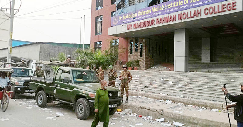রাজধানী ডেমরায় ড. মাহবুবুর রহমান মোল্লা কলেজে (ডিএমআরসি) দিনভর সংঘাতের পর বিকেলে পরিস্থিতি নিয়ন্ত্রণে এনেছে আইনশৃঙ্খলা বাহিনী। সন্ধ্যার আগেই পুরো কলেজের নিয়ন্ত্রণ নিয়েছে সেনাবাহিনী৷ তবে সংঘর্ষে কলেজটির বিভিন্ন অংশের ভাঙাচোরা দেখতে উৎসুক জনতার ভিড় দেখা গেছে৷