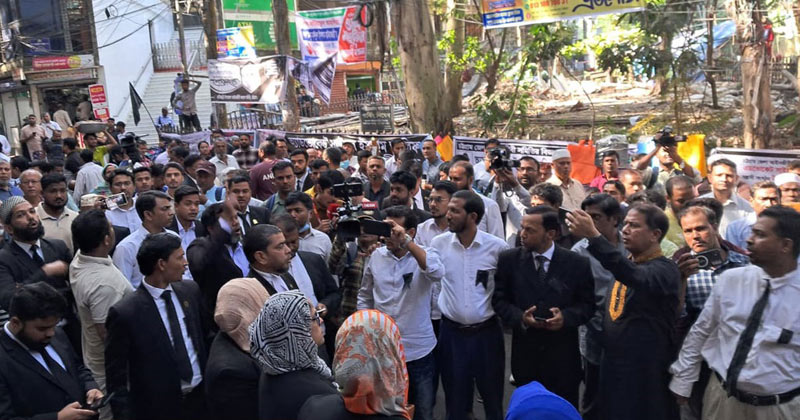 বৃহস্পতিবার (২৮ নভেম্বর) বেলা ১১টা থেকে আইনজীবীদের বিভিন্ন সংগঠনের পক্ষ থেকে বিক্ষোভ শুরু হয়েছে। দুপুর ১টার দিকে আইনজীবীদের একটি মিছিল আদালতপাড়ার বিভিন্ন সড়ক প্রদক্ষিণ করে।