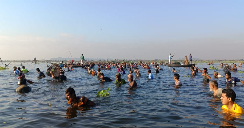 বিভিন্ন স্থান থেকে কাকডাকা ভোরে কারো হাতে পলো, কারো হাতে খেয়া জাল, বাদাই জালসহ মাছ ধরার নানা উপকরণ। দল বেঁধে বিলে নেমে মনের আনন্দে মাছ শিকার শুরু করেন। কেউ পাচ্ছেন বোয়াল, কেউ বা শোল, রুই, কাতল। অনেকে ফিরছেন খালি হাতে। এভাবেই চলনবিলে মাছ শিকারে মেতেছেন সৌখিন মৎস্য শিকারিরা।