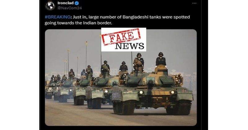 ভারতীয় সীমান্তের দিকে বাংলাদেশের ট্যাংকের বহর এগিয়ে যাচ্ছে বলে গুজব ছড়িয়েছে। সামাজিক মাধ্যম এক্সের কিছু একাউন্ট থেকে ছড়ানো হচ্ছে এসব গুজব।