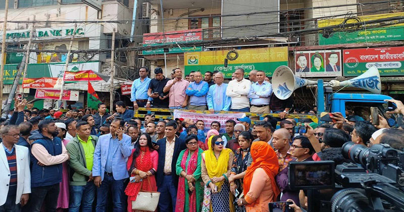 রোববার (৮ ডিসেম্বর) সকাল সাড়ে ১১ টার আগে নয়াপল্টনে বিএনপির কেন্দ্রীয় কার্যালয়ের সামনে থেকে এ কর্মসূচি শুরু হয়।