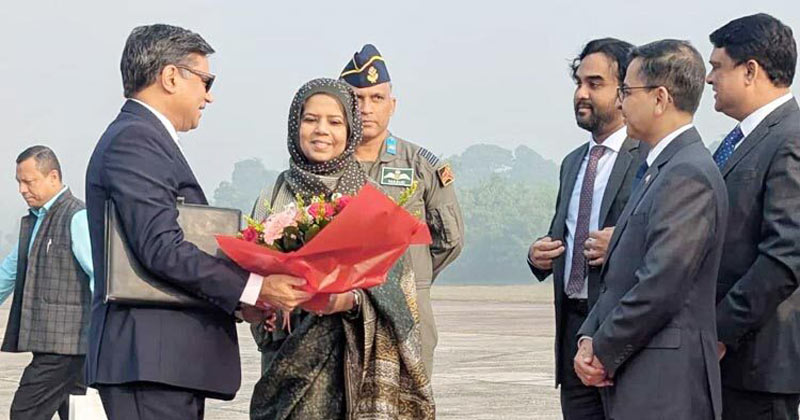 বিমানবন্দরে তাকে স্বাগত জানান পররাষ্ট্র মন্ত্রণালয়ের মহাপরিচালক (দক্ষিণ এশিয়া অনুবিভাগ) ইশরাত জাহান।