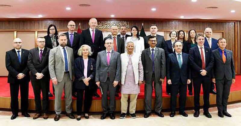 ১৯ সদস্যের প্রতিনিধিদলটির নেতৃত্বে ছিলেন ঢাকায় নিযুক্ত ইউরোপীয় ইউনিয়নের হেড অব ডেলিগেশন মাইকেল মিলার। প্রধান উপদেষ্টার সঙ্গে বৈঠকে অংশ নেন পররাষ্ট্র উপদেষ্টা তৌহিদ হোসেন।