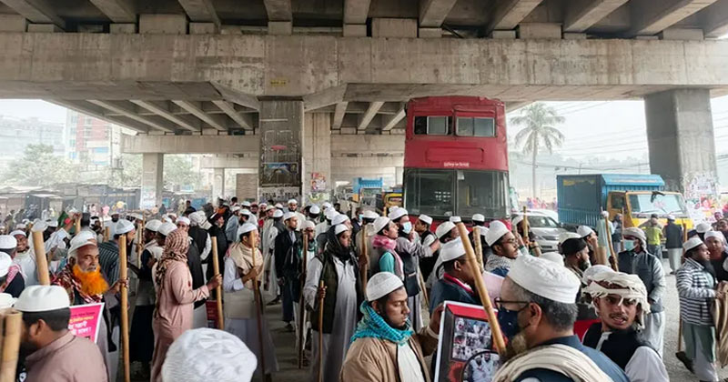 জানা যায়, ইজতেমা ময়দানে আজ ভোর থেকেই অবস্থান করে জুবায়েরপন্থীরা মহাসড়ক অবরোধ করে। তারা টঙ্গী ইজতেমা ময়দানের তিন পাশে সড়কে অবস্থান নেয়। বেলা ১টার দিকে তারা স্টেশন রোডে ঢাকা-ময়মনসিংহ মহাসড়ক অবরোধ করে।
