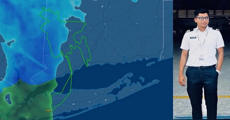 নিউইয়র্কের আকাশে বাংলাদেশের মানচিত্র ও পাইলট ফাহিম চৌধুরী, (সংগৃহীত ছবি)