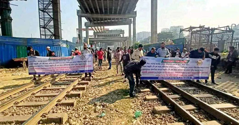 রাজধানীর কারওয়ান বাজার রেলক্রসিং অবরোধ করেছেন রেলের অস্থায়ী শ্রমিকরা। এতে করে ঢাকার সঙ্গে সারা দেশের রেল যোগাযোগ বন্ধ হয়ে গেছে।
