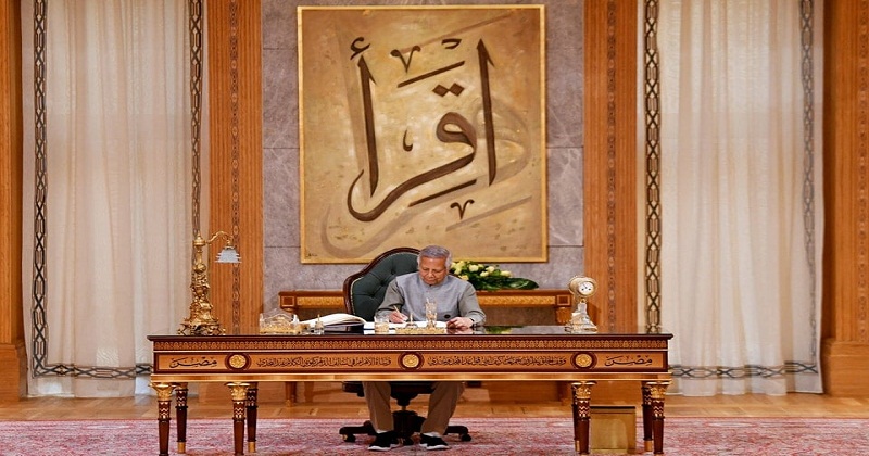 অধ্যাপক ইউনূস নতুন প্রেসিডেন্সিয়াল প্যালেসে রাখা দর্শনার্থী বইয়ে সই করেন।
