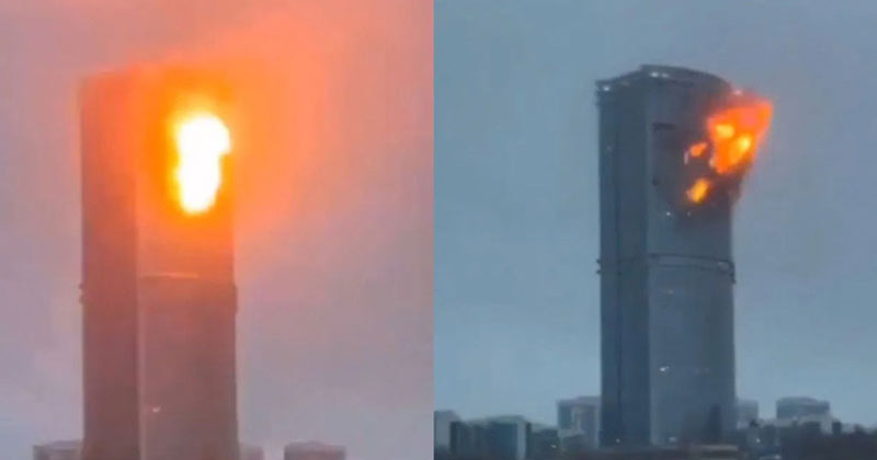 ভিডিওতে দেখা যায়, ড্রোন হামলার পর আগুন ধরে যায় ভবনে। ধোয়া ছড়িয়ে পড়তে থাকে। হামলার পর সতর্কতা জারি করেছে দেশটি।