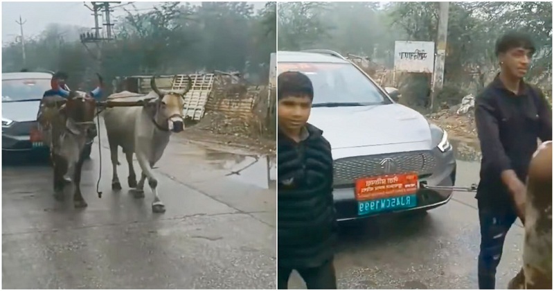 বিনোদ ভোজক নামের এক্স অ্যাকাউন্টে এই ঘটনার একটি ভিডিও পোস্ট করা হয়েছে। এতে দেখা যায়, অনিলের ইলেকট্রিক গাড়ির সামনে দু’টি গরু দাঁড়িয়ে। দড়ি দিয়ে গাড়ির সঙ্গে বাঁধা হয়েছে গরু দু’টি। সেই গাড়ি টেনে নিয়ে যাচ্ছে গরু দু’টি। মাঝপথে অনিলের গাড়ি খারাপ হয়ে যাওয়ায় এমন কাণ্ড ঘটিয়েছেন তিনি।