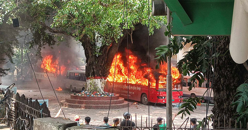 বিবাদীরা ধারালো অস্ত্রের সাহায্যে আক্রমণ করে প্রাণনাশের চেষ্টা করেন। সেই সময় বিশ্ববিদ্যালয়ের ক্যাম্পাসে রাখা হাসপাতালের গাড়ি ও সাধারণ মানুষের গাড়ি ভাঙচুর ও অগ্নিসংযোগ করা হয়। তাদের মধ্যে বিশ্ববিদ্যালয়ে অনেকেই স্থানীয় আওয়ামী লীগ ও ছাত্রলীগের নেতাকর্মী হিসেবে চিহ্নিত। ঘটনার দিন আরও দেখা যায়, বিশ্ববিদ্যালয়ের ১নং গেটের ভেতরে বিশ্ববিদ্যালয়ের ৩০/৩৫টি গাড়ি, মোটরসাইকেল পুড়িয়ে ফেলা হয়। এছাড়াও কেবিন ব্লকের সামনেসহ বিশ্ববিদ্যালয়ের বিভিন্ন স্থানে আগুন লাগিয়ে বিশ্ববিদ্যালয়ের সম্পত্তি ধ্বংস করা হয়। এখনো ক্যাম্পাসের ভেতরে পোড়া বাস দেখলে বোঝা যায় ওই দিন কি বীভৎস অবস্থা হয়েছিল।
