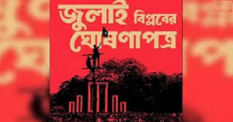 গত মঙ্গলবার রাজধানীর ফরেন সার্ভিস একাডেমিতে সংবাদ সম্মেলনে অন্তর্বর্তী সরকারের উপদেষ্টা মাহফুজ আলম বলেন, ‘গণঅভ্যুত্থানের একটি প্রেক্ষাপট-প্রত্যাশা এই ঘোষণাপত্রে প্রতিফলিত হবে। সব রাজনৈতিক দল এবং পক্ষের মতামত নিয়ে ঐকমত্যের ভিত্তিতে এই ঘোষণাপত্র ঘোষিত হবে।’