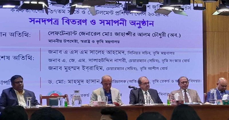 ভূমি রেকর্ড ও জরিপ অধিদপ্তরের পরিচালক (অতিরিক্ত সচিব) ড. মো. মাহমুদ হাসানের সভাপতিত্বে রাজধানীর তেজগাঁও ভূমি ভবনের কেন্দ্রীয় সেমিনার কক্ষে আয়োজিত অনুষ্ঠানে বিশেষ অতিথি হিসেবে উপস্থিত ছিলেন, ভূমি মন্ত্রণালয়ের সিনিয়র সচিব এস এম সালেহ আহমেদ, ভূমি সংস্কার বোর্ডের চেয়ারম্যান (সচিব) এ জে এম সালাহউদ্দিন নাগরী, ভূমি আপিল বোর্ডের চেয়ারম্যান (সচিব) মুহম্মদ ইব্রাহিম।