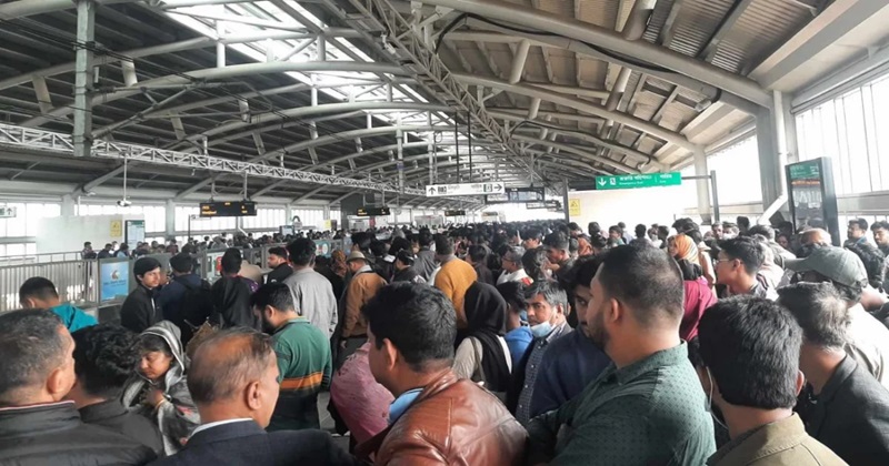 প্রায় ১৫ মিনিট সেখানে বন্ধ থাকার পর আবার ট্রেনটিকে উত্তরা সেন্টারে নেওয়া হয়। যাত্রীদের নামিয়ে ট্রেন খালি রেখে সমস্যা সমাধানের চেষ্টা করে মেট্রো কর্তৃপক্ষ।
