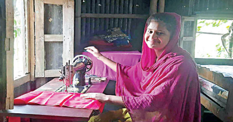 নীরবে-নিভৃতে নিজ ঘরের এক কোণে জানালার পাশেই বসানো সেলাই মেশিনে কাজ করছেন তিনি। পাশেই তৈরি করা অনেক পোশাক। কাস্টমার নির্ধারিত সময়ে নিয়ে যাবে। প্রতি মাসে তার আয় হয় কমপক্ষে পাঁচ হাজার টাকা।
