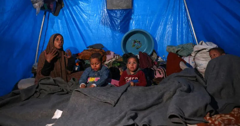 ইসরায়েলি বাহিনী গাজার প্রায় ২৩ লাখ বাসিন্দাকে বাস্তুচ্যুত করেছে, যাদের মধ্যে হাজারো মানুষকে বাধ্য করা হয়েছে উপকূলের অস্থায়ী তাঁবুতে আশ্রয় নিতে। বৃষ্টি-বাতাস আর ঠান্ডা আবহাওয়ায় তাদের বেশ ভোগান্তির মধ্য দিয়ে যেতে হচ্ছে।