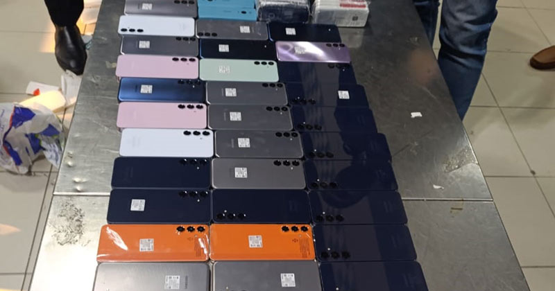 যাত্রীবিহীন একটি ট্রলি ব্যাগ তল্লাশি করে এই ৯৫টি মোবাইল ফোন উদ্ধার করা হয়।