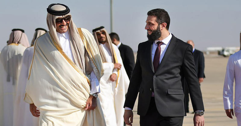 সিরিয়ার অন্তর্বর্তী প্রেসিডেন্ট আল শারা কাতারের আমিরকে স্বাগত জানাতে দামেস্ক আন্তর্জাতিক বিমানবন্দরে উপস্থিত ছিলেন।