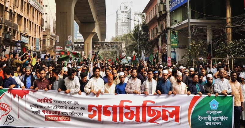 আজ শুক্রবার (৩১ জানুয়ারি) ‘ফ্যাসিস্ট সরকারের গুম, খুন, দুর্নীতিসহ রাষ্ট্রবিরোধী কর্মকাণ্ড এবং জুলাই গণহত্যার সঙ্গে জড়িতদের বিচারের দাবিতে’ ছাত্রশিবির আয়োজিত গণমিছিল শেষে তিনি এ মন্তব্য করেন।