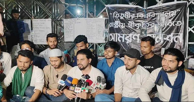 প্রসঙ্গত, সরকারি তিতুমীর কলেজকে বিশ্ববিদ্যালয়ে রূপান্তরের দাবিতে বেশ কয়েক মাস ধরে আন্দোলন করে আসছিলেন প্রতিষ্ঠানটির শিক্ষার্থীরা। এ দাবিতে মিছিল, সড়ক-রেলপথ অবরোধ, স্মারকলিপি প্রদান, ক্লাস বর্জনসহ বিভিন্ন কর্মসূচি পালন করেন তারা। যার পরিপ্রেক্ষিতে সম্ভাব্যতা যাচাই-বাছাই করতে শিক্ষা মন্ত্রণালয়ের পক্ষ থেকে একটি বিশেষ কমিটিও গঠন করা হয়। তবে সম্প্রতি এ বিষয়ে ইতিবাচক কোনো সাড়া না পেয়ে গত বুধবার (২৯ জানুয়ারি) বিকেল থেকে দাবি আদায়ে আমরণ অনশনসহ বিভিন্ন কর্মসূচি পালন করছেন শিক্ষার্থীরা।