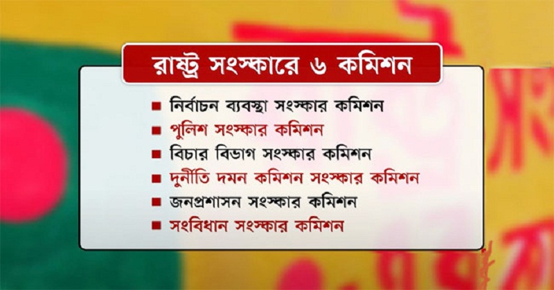 অন্তর্বর্তী সরকার গঠনের ১ মাস ৩ দিনের মাথায় গত ১১ সেপ্টেম্বর বহুল আলোচিত গুরুত্বপূর্ণ ছয়টি খাত সংস্কারে কমিশন গঠনের ঘোষণা দেন প্রধান উপদেষ্টা।