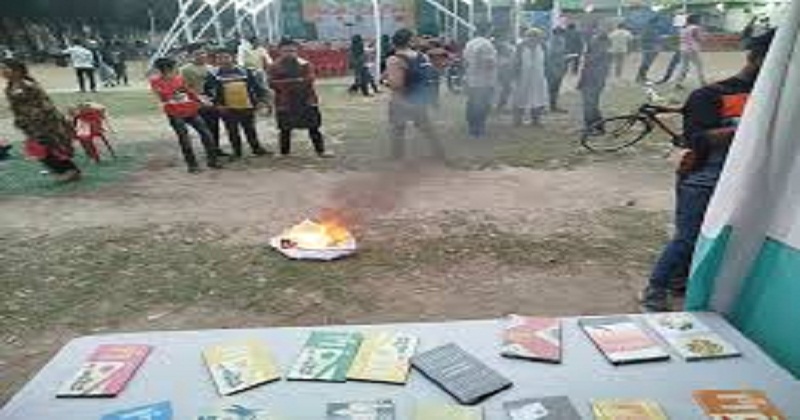 সাতক্ষীরায় তারুণ্য মেলায় উদীচী শিল্পীগোষ্ঠীর স্টলের ব্যানার পুড়িয়ে দিয়েছে বৈষম্যবিরোধী ছাত্র আন্দোলন ও জাতীয় নাগরিক কমিটির নেতাকর্মীরা।