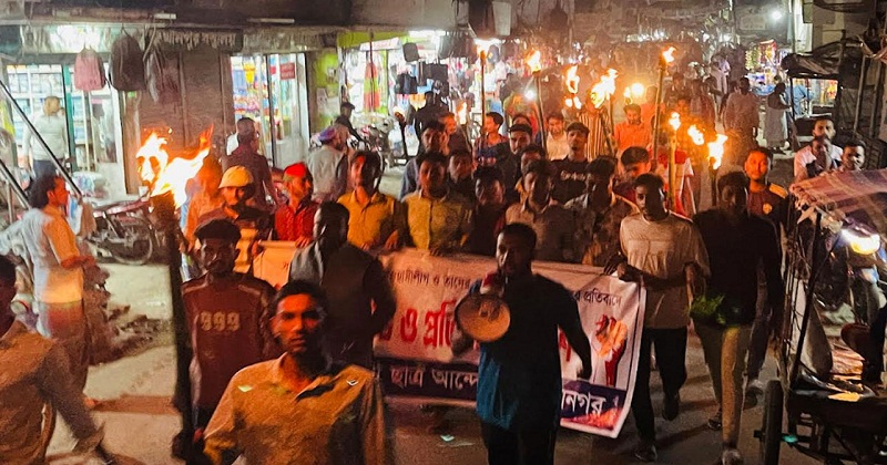 সাতক্ষীরা জেলা যুবলীগের মশাল মিছিলের প্রতিবাদে শ্যামনগর উপজেলায় বৈষম্যবিরোধী ছাত্র আন্দোলনের নেতাকর্মীরা পাল্টা মশাল মিছিল করেছেন।