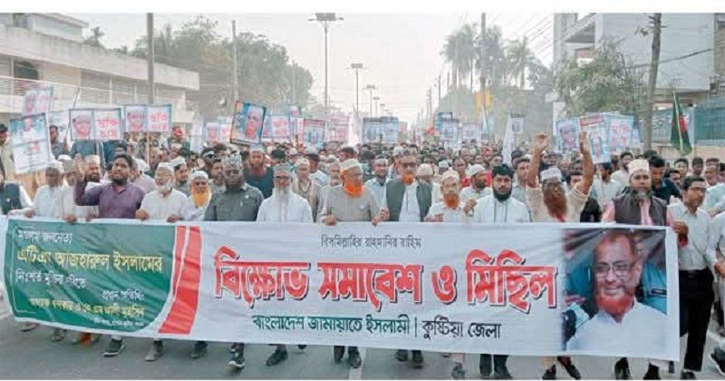 মিছিল শেষে কুষ্টিয়া মজমপুরে বিশাল বিক্ষোভ সমাবেশ করেন জামায়াতের নেতাকর্মীরা।
