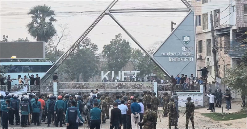 ছাত্রদল ও বৈষম্যবিরোধী ছাত্র আন্দোলনের নেতাকর্মীদের মধ্যে সংঘর্ষের পর খুলনা প্রকৌশল ও প্রযুক্তি বিশ্ববিদ্যালয় ক্যাম্পাস ২৮ ফেব্রুয়ারি পর্যন্ত বন্ধের ঘোষণা দিয়েছে কর্তৃপক্ষ।