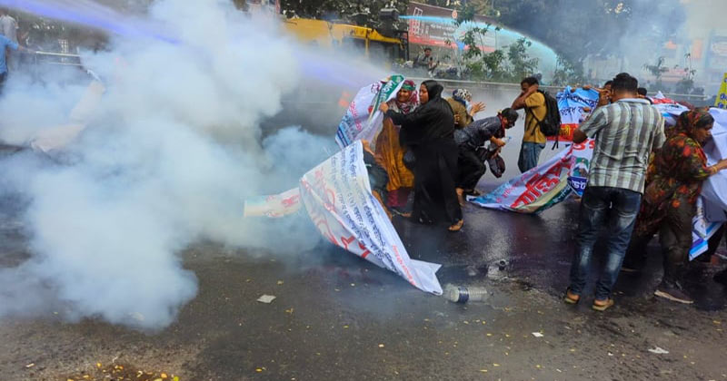 চাকরি স্থায়ীকরণের দাবিতে সড়ক অবরোধ করে বিক্ষোভ করা আউটসোর্সিং কর্মীদের ওপর জলকামান ও সাউন্ড গ্রেনেড নিক্ষেপ করেছে পুলিশ।