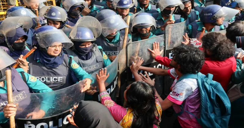 পরে বিকেল ৩টা ৫ মিনিট নাগাদ রাজধানীর শিক্ষা ভবন মোড়ে এলে পুলিশের বাধার মুখে পড়েন আন্দোলনকারীরা।