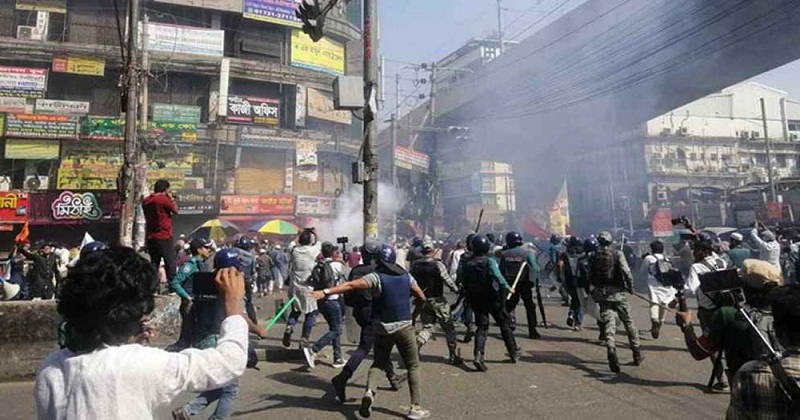 শুক্রবার (৭ মার্চ) জুমার নামাজের পর জাতীয় মসজিদ বায়তুল মোকাররমের দক্ষিণ গেট থেকে মিছিল শুরু করলে এ ঘটনা ঘটে।