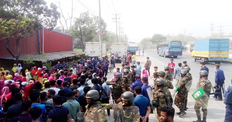 এর মধ্যে খাদ্য উৎপাদান তৈরি কারখানার শ্রমিকরা ঢাকা-ময়মনসিংহ মহাসড়কে অবস্থান নিয়ে অবরোধ করেন। এতে ওই মহাসড়কে এক ঘণ্টা যানবাহন চলাচল বন্ধ থাকে। এরপর আইনশৃঙ্খলা বাহিনী তাদের বুঝিয়ে সড়ক থেকে সরিয়ে দিলে যান চলাচল স্বাভাবিক হয়।