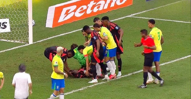 ম্যাচের ৬৯ মিনিটে একটি ফ্রি কিক শট পাঞ্চ করে দূরে সরাতে গিয়ে কলম্বিয়ার ডিফেন্ডার দাভিদসন সানচেজের মাথার সঙ্গে সজোরে ধাক্কা লাগে ব্রাজিলিয়ান গোলকিপার এলিসন বেকারের। দুজনই সঙ্গে সঙ্গে মাঠে লুটিয়ে পড়েন। পরে তাদের মাঠের বাইরে নিয়ে যাওয়া হয়।