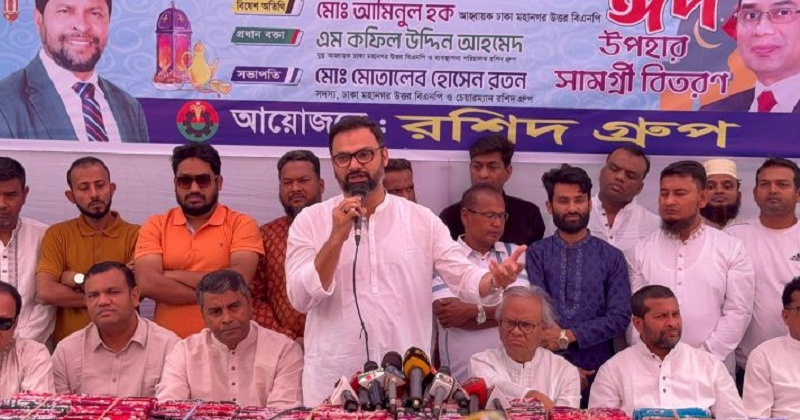 শুক্রবার (২১ মার্চ) দুপুরে উত্তরার ফায়দাবাদে রশিদ গ্রুপের আয়োজনে দুস্থ অসহায় মানুষের মাঝে ঈদ উপহার সামগ্রী শাড়ি ও লুঙ্গি বিতরণকালে বিশেষ অতিথির বক্তব্যে তিনি এসব কথা বলেন।